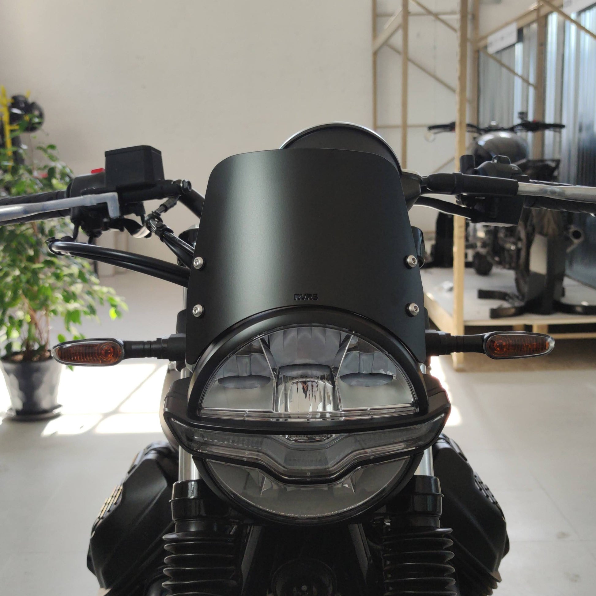 Cupolino in alluminio specifico per Moto Guzzi V7 850 E5 ed E5 + . Si installa senza modifiche alla moto. Specifico sia per le staffe strumentazione RVRS centrata, che per la versione originale.
